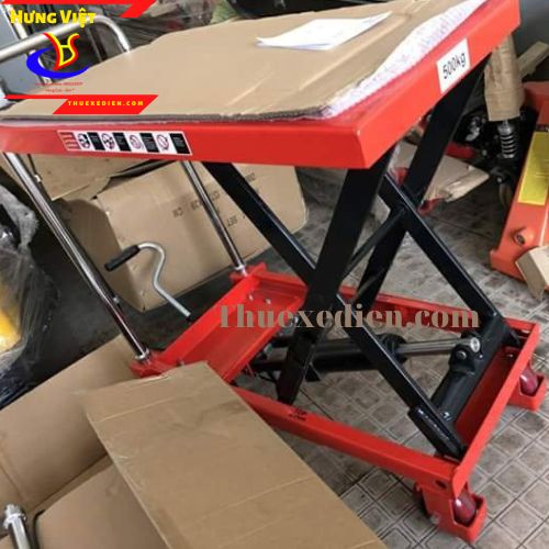 Thiết kế linh hoạt: Mặt bàn rộng 855x500mm, phù hợp nâng chậu cây, thùng hàng, thiết bị máy móc…