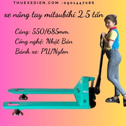 Xe nâng tay thấp Mitsubishi 2.5 tấn là dòng xe nâng tay hoạt động nâng hạ bằng hệ thống bơm thủy lực.